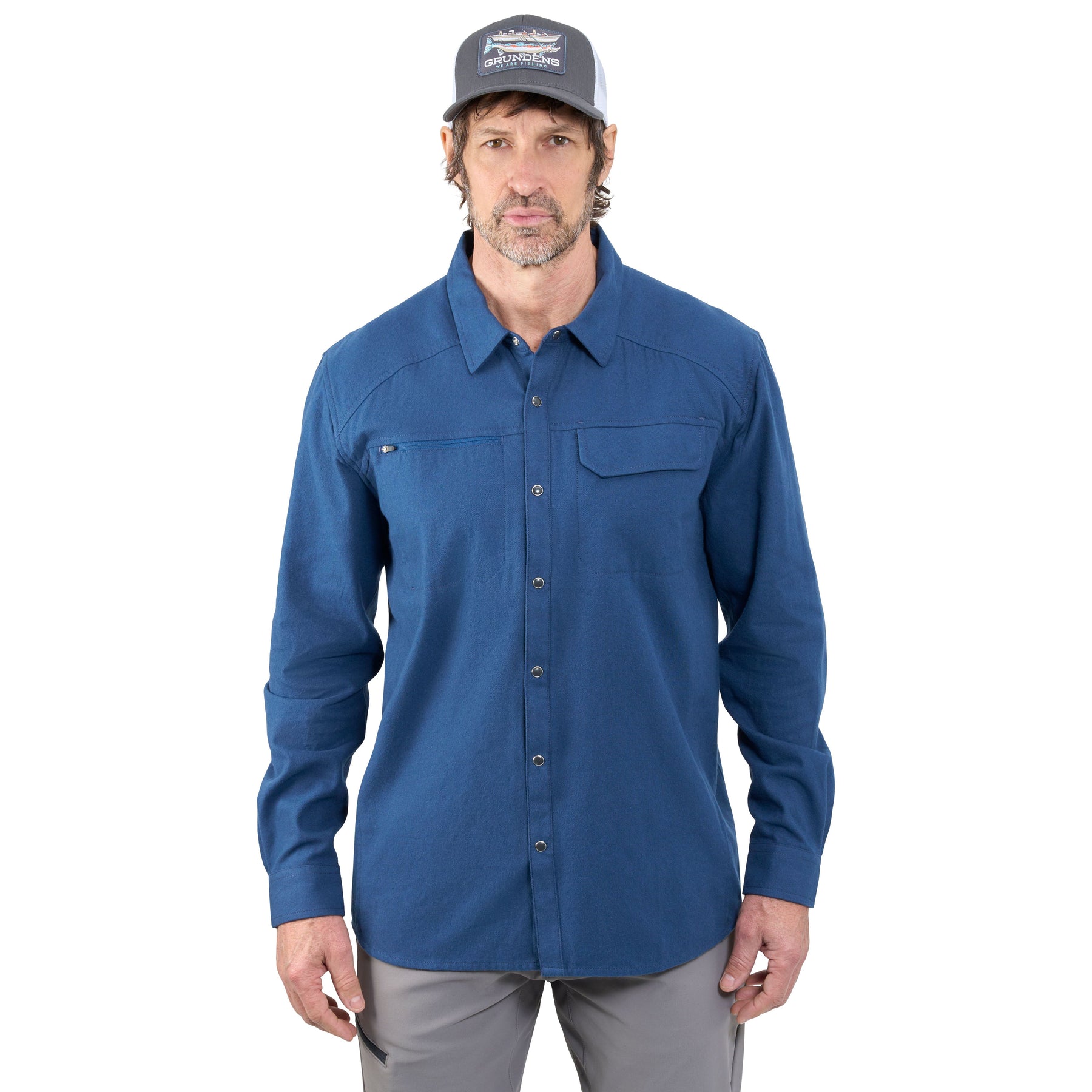 Grundens Dispatch Flannel Shirt Blue Abyss Image 01