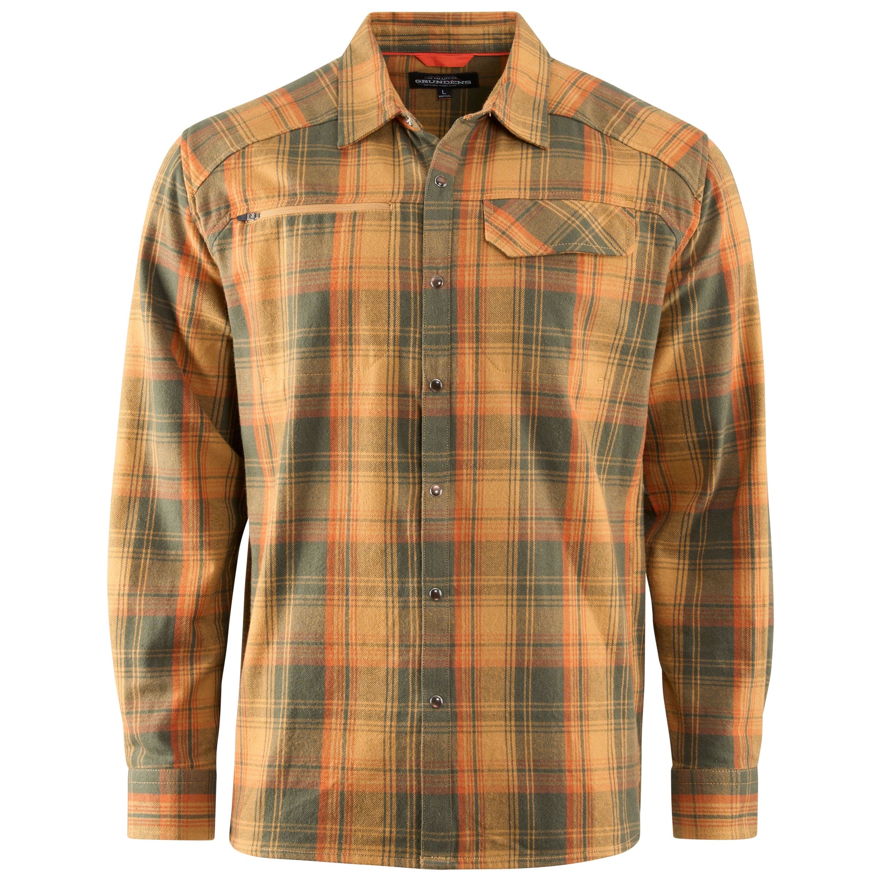 Grundens Dispatch Flannel Shirt Cedar Plaid Image 01