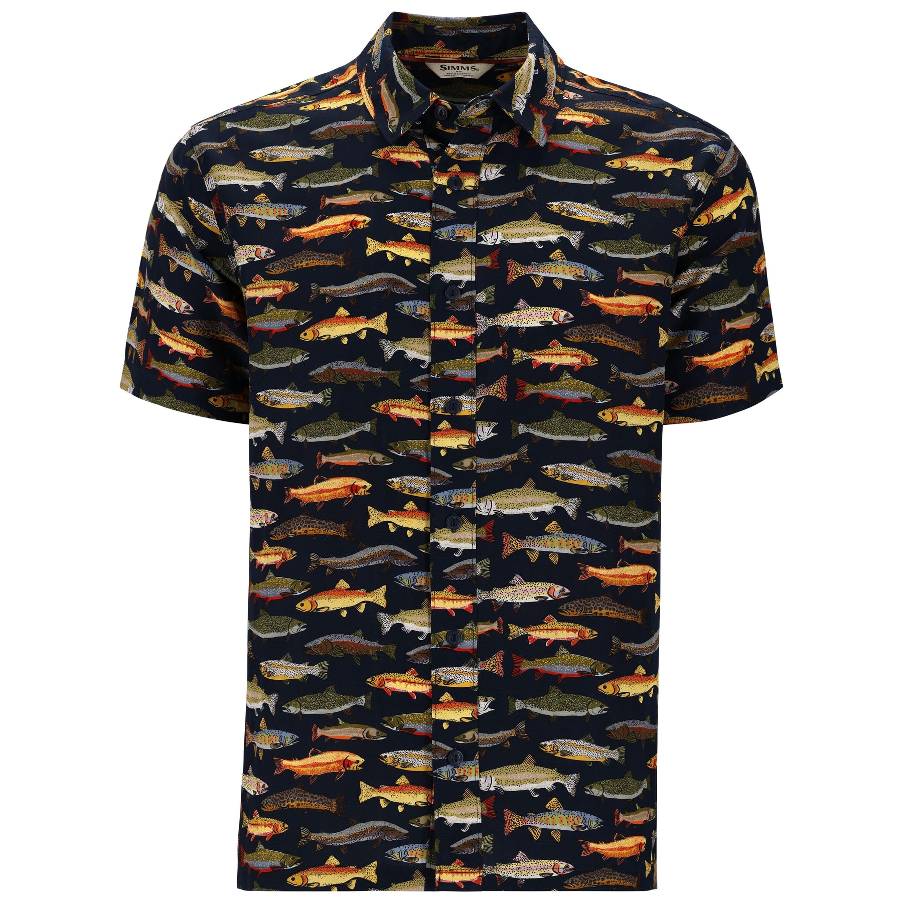 Simms Men's Tailout SS Shirt Natural Trout Parade Image 01